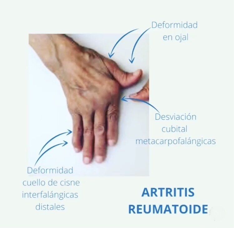 DEFORMIDAD DE LA ARTRITIS REUMATOIDE EN LOS DEDOS DE LA MANO