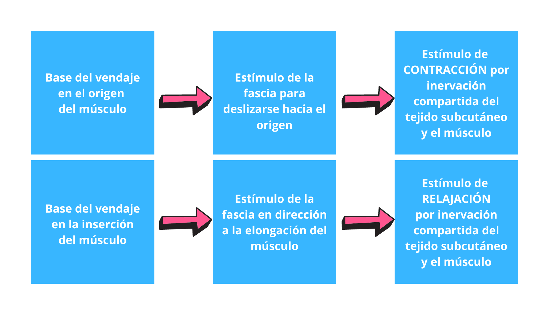 Este mecanismo se produce gracias a la conexión entre los tejidos y a la propiedad elástica del vendaje neuromuscular, el cual genera una tracción y transmisión de dicha tracción desde la primera capa de la piel hasta la fascia profunda, epimisio y músculo. Esta tracción transmitida generará la activación de receptores locales y activación del mecanismo reflejo de defensa que intentarán mantener el estado de reposo, obligando a las capas profundas a moverse en el mismo sentido de la tracción que genera el vendaje neuromuscular.